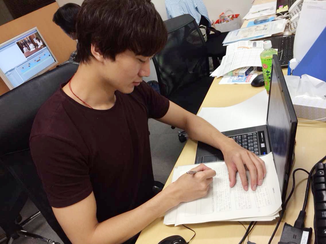 この期間、企画・ビデオの編集・台本の翻訳・リポーターなど様々な仕事をさせていただきました。学生生活では全然体験したことがない仕事がいっぱいでした。めっちゃ大変でしたが凄く成長しました。特に編集の仕事をして、番組を作るってこんなに大変な仕事なんだと思いました。まわりの社員さんたちが一つのビデオに何十時間もかけて編集する姿を見て、僕は勇気を与えられました(笑)。そして、僕も眠りを超え、イライラに耐え、初編集の作品ができあがりました! 結局、小山さんに全部直されましたけど:(。