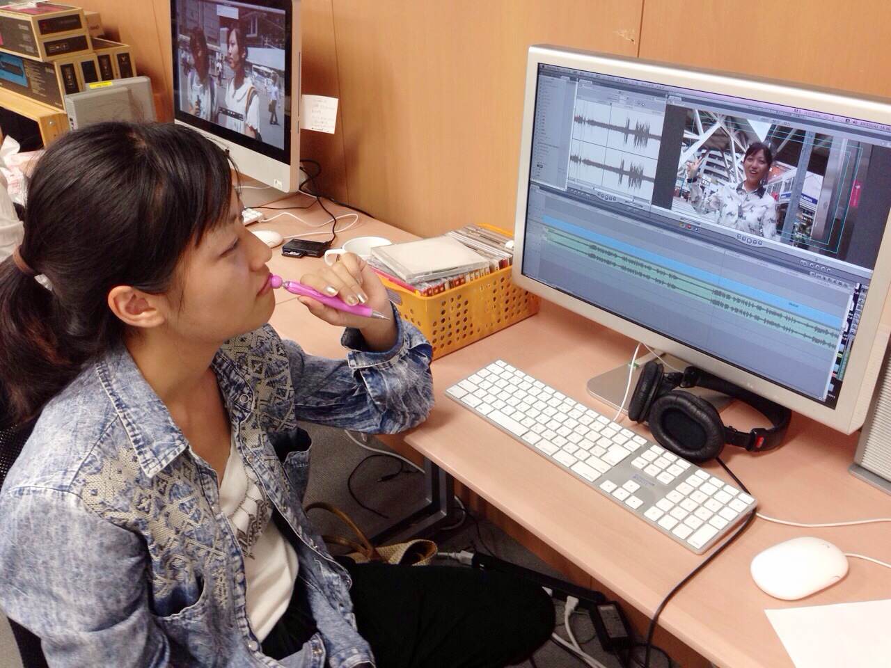 今日は、同じインターンシップを受けている楊(よう)さんと一緒に中国語の映像に日本語の字幕を入れる作業をしました。結構長い映像なのでなかなか終わりませんでした。映像に合わせて字幕を入れなければならないので時間がかかりました。
