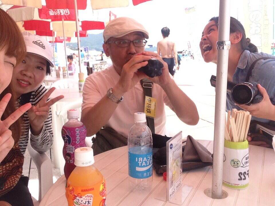 今日は須磨の海の家に行って「ビックリ日本」の撮影。スイカ割りとインタビューをしました。スイカ割りは、日本人がビーチでよくするゲームだそうです。面白かったです。そして、楊さんが日本人の女性にインタビュー。これはスタッフとして参加しました。長時間でした。3~4時間かかったと思います。当然、日焼けしてしまいました。みなさん、是非ビデオを楽しみにしてください。