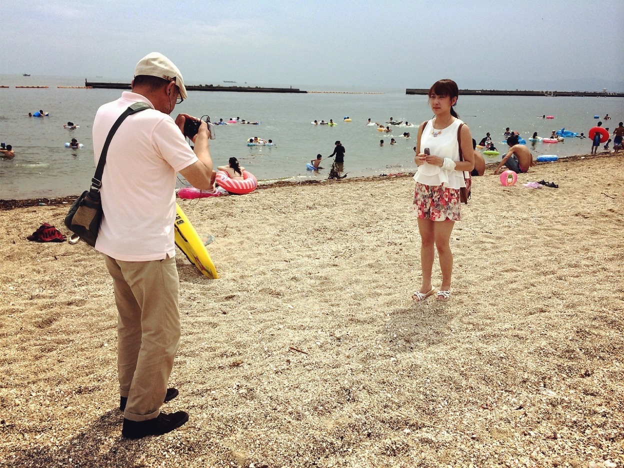 8月13日に神戸市の須磨海水浴場で2本のビデオを撮りました。一本目は、先輩の張さんや同じ実習生の兪さんと一緒に日本人がよく海岸でするゲーム「スイカ割り」を体験しました。とても楽しくてスムーズだったので、リポーターの仕事ってそんなに難しくないなぁ、と思いました。