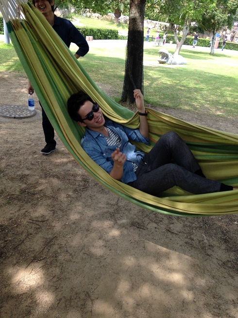 こちらはハンモックと戯れる小森さん。サングラスがよく似合ってます。