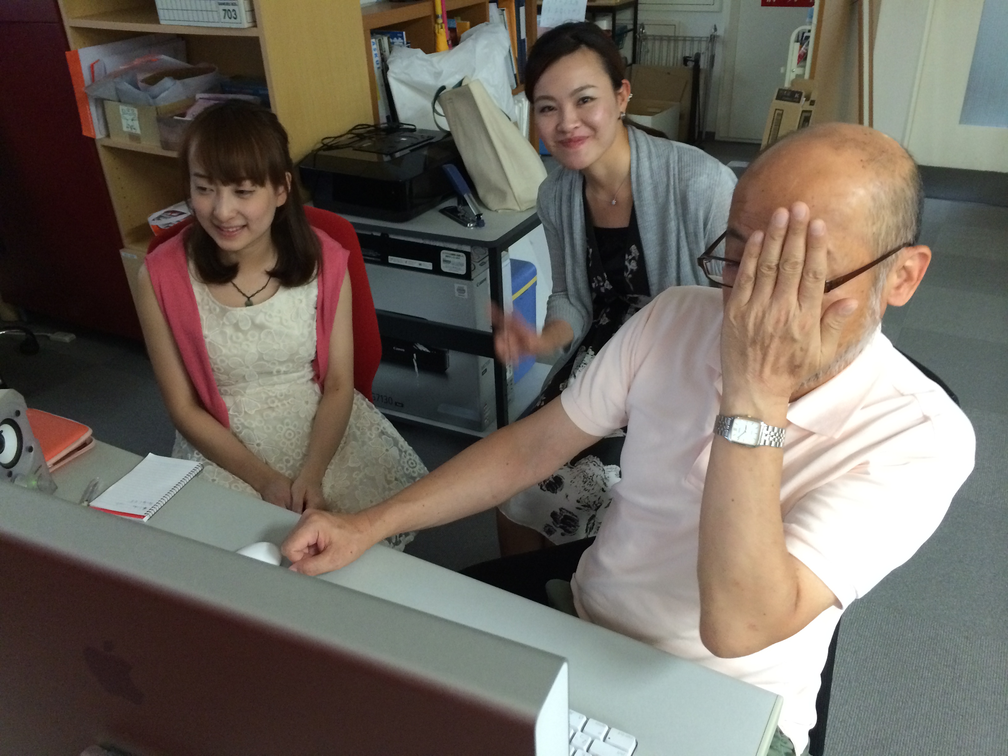二日目は私にとって一番勉強になった日です。中国語の番組を日本語に翻訳し、字幕の編集をしました。日本に来てはじめてこのような仕事をします。しかも、ディレクターの小山さんが翻訳したものを丁寧に直してくれて、ナチュラルな日本語をたくさん教えてくれました。学校ででもこのような日本語学習のチャンスがあまりないので、インターシップのやりがいを感じました。それに、字幕編集の大変さも実感しました。↓(まさか小山さんが恥ずかしいがり屋??笑)