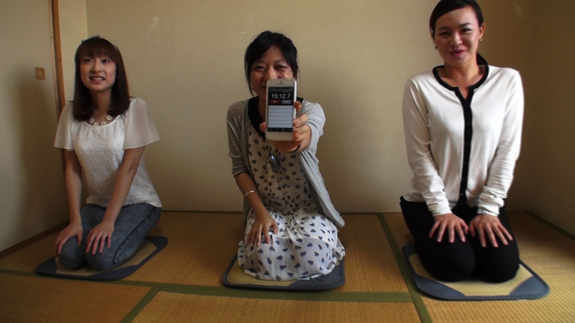 三日目は始めての撮影で、日本の伝統的な座り方正座を体験しました。普段あまり運動しないせいか、座った時点から足がすごく痛くて、諦めようと思いました。でも、皆の足を引っ張らないように15分も我慢しました。下の写真は15分になった時の状況です。一番左側で超嬉しそうな顔をしているのは私で~す!映像はまだアップロードしていないですが、楽しみにしてくださいねo(^-^)o。