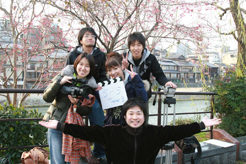 インタビューする役がモデルさんで僕は通りすがりの人で出演(後ろ姿で画面の端)