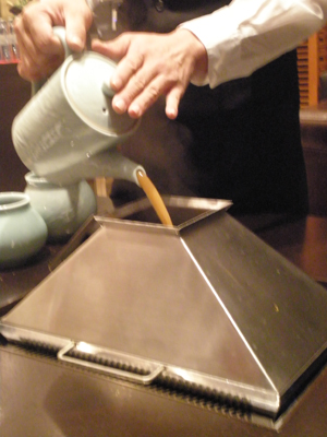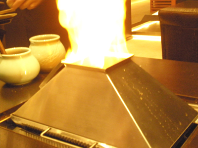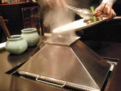 ロースターの上で網・陶板・ステンレス鍋と3パターンの焼き板が登場します。