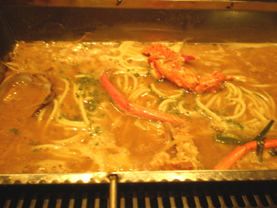 「伊勢海老の信州味噌仕立てパスタ添え」の完成です。