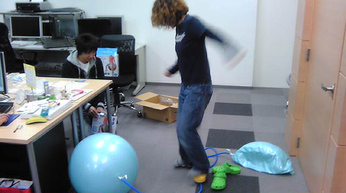 写真は両足つかって2つ一気に膨らましている模様。