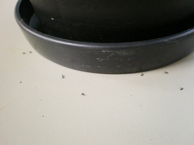 実は総務の久下さんが、この鉢植えの周辺にアリの大群がウヨウヨしているのを