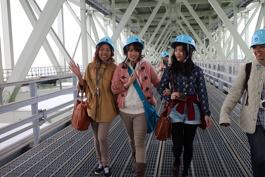 写真を見てもらうと分かるように、橋はけっこ うな高さがあるため、ここで物を落とすと、大きな事故になる可能性があるので、携帯電話やカメラなどは首にかけるか、かばんの中にしまわないといけません。