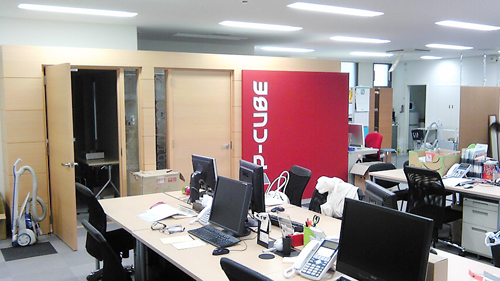 新オフィスは、3メートルのクロマキーの布がピッタリ吊るせる仕組みになって