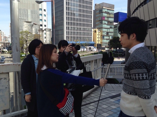 現場に着くとまず、新入社員同士でインタビューをし合い、カメラや質問等の確認をした後、実際に街歩く人に声を掛け、インタビューをさせて頂きました。