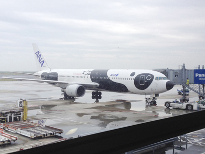 飛行機はパンダ仕様でした。